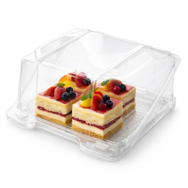 Компактне та елегантне рішення для презентації ваших десертів. Цей контейнер спеціально створений для того, щоб підкреслити красу кожного тістечка, зберігаючи його свіжість та цілісність.