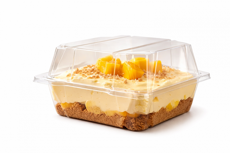 Матеріал: Високоякісний ПЕТ (поліетилентерефталат). Він кришталево прозорий, що дозволяє покупцеві роздивитися кожен шар вашого десерту чи салату.